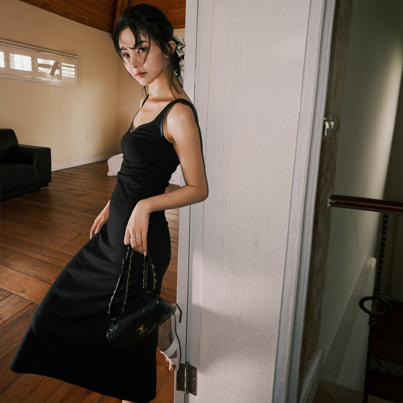 欧美辣妹风百搭花苞连衣裙 清冷复古撞色拼接抹胸裙女 Sisjuly