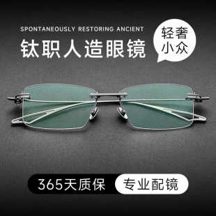 刀锋战士纯钛无框眼镜男近视配有度数散光防蓝光日系设计款 变色男