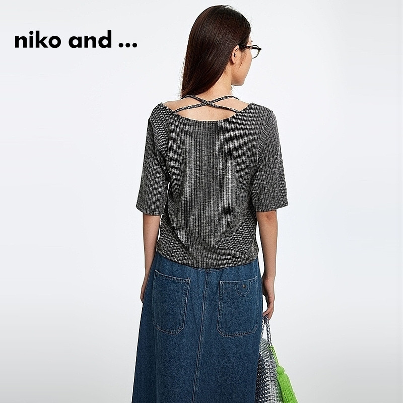 新款 时尚 休闲修身 niko 短袖 ...T恤女夏季 短款 130279 and