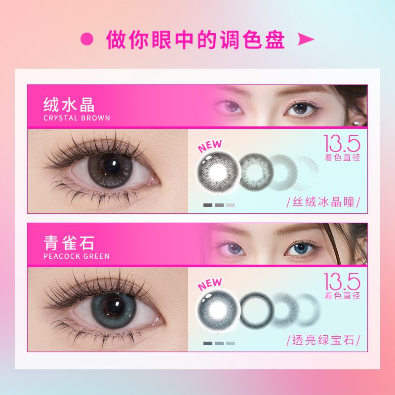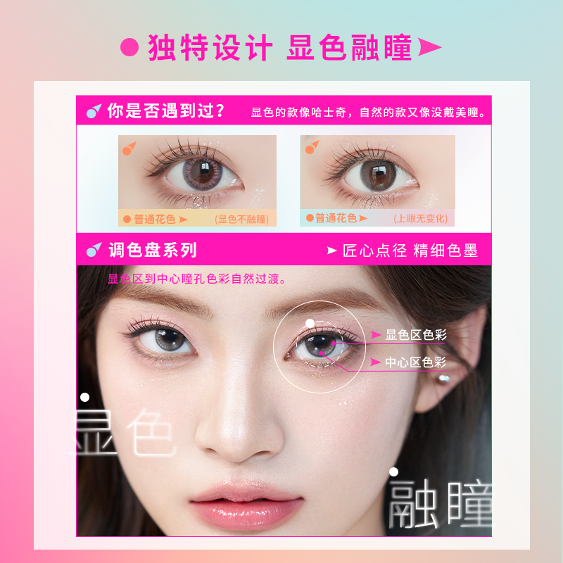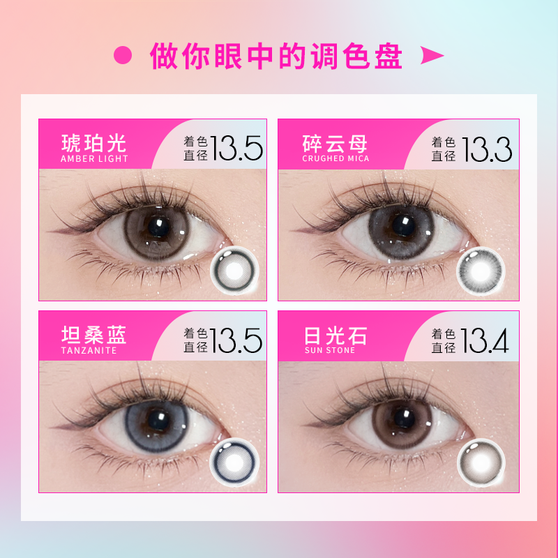 Glam up美瞳调色盘月抛小直径1片轻混血琥珀光碎云母彩色隐形眼镜