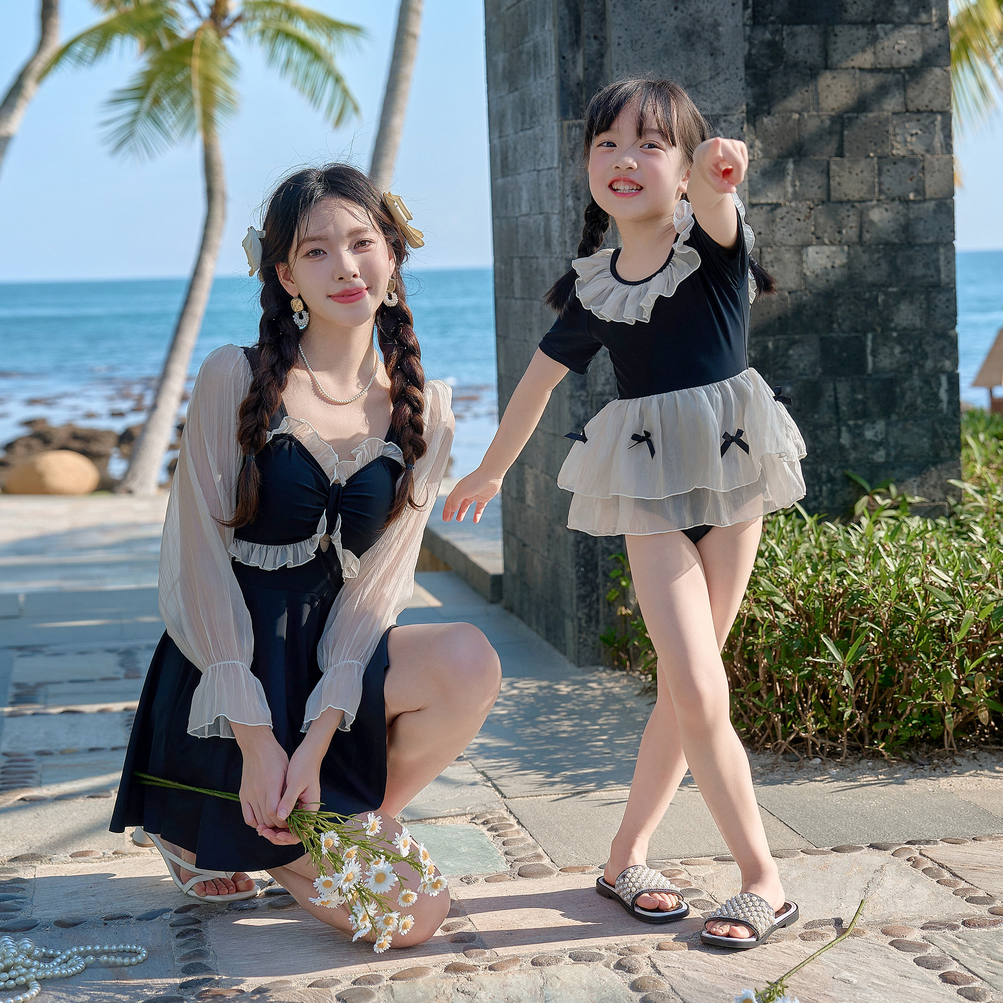 新款 女童女孩洋气可爱甜美公主风游乐园 韩系亲子泳衣母女连体裙式