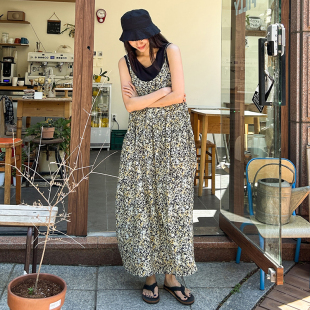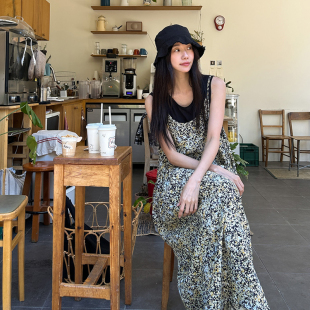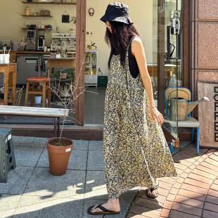 SYLP穗伊 碎花吊带长裙连衣裙子 复古舒适凉爽叠穿宽松A型背带无袖