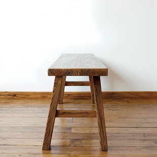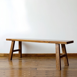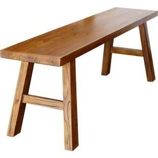 古榆情怀全实木长条凳原木换鞋 榫卯老榆木长餐椅板凳子 简约新中式