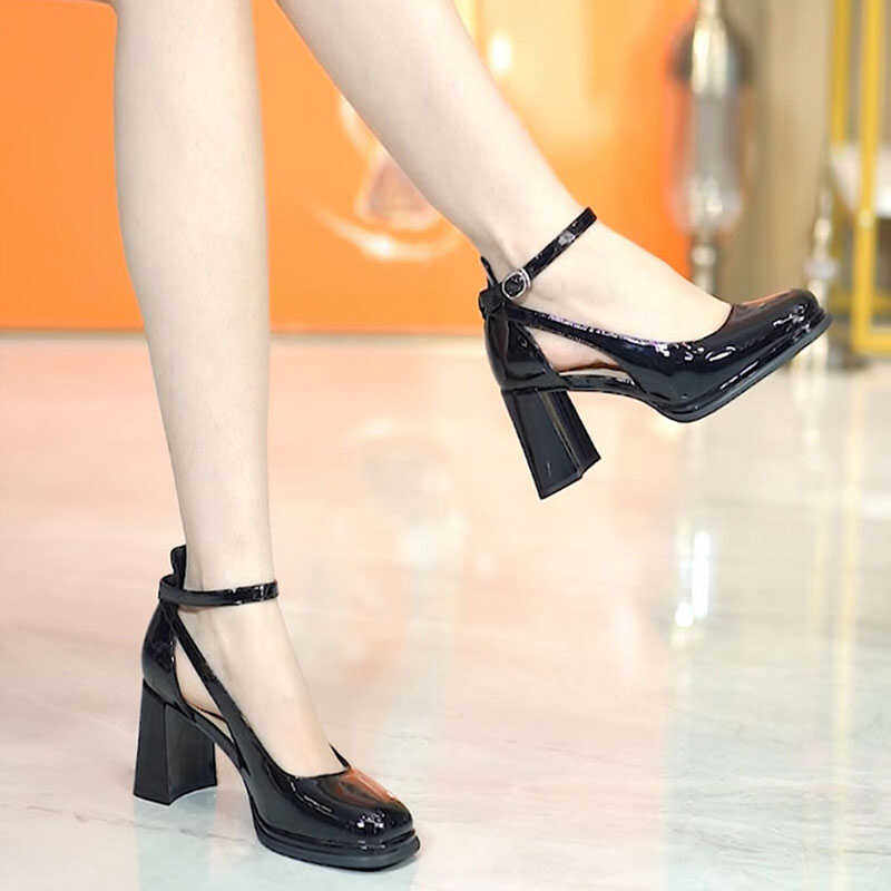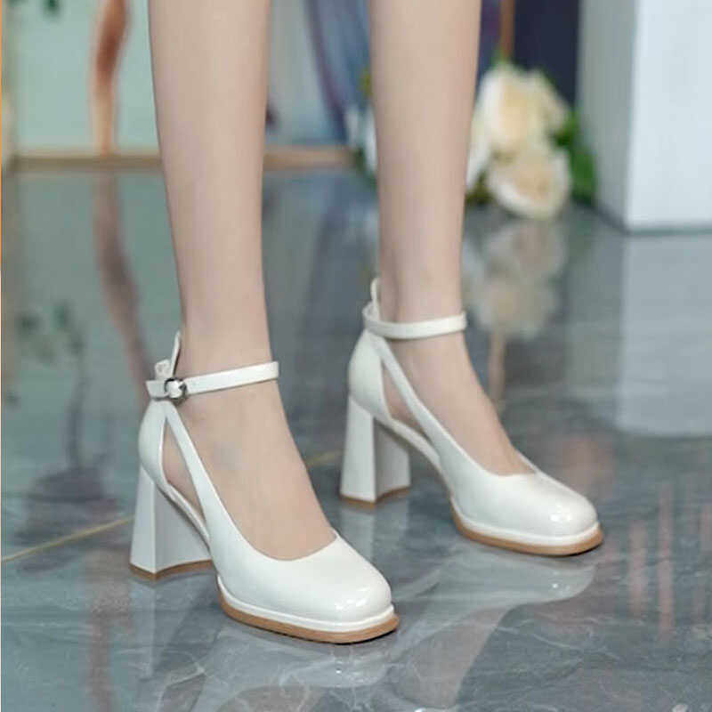 法式 女鞋 不累脚加绒单鞋 大码 女浅口灰色一字带粗跟玛丽珍鞋 米霏