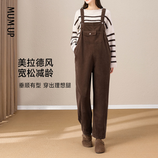 秋冬款 宽松免脱灯芯绒孕期裤 2025孕妇装 加绒大码 子 冬季 孕妇背带裤