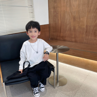 T恤儿童长袖 男孩白色纯棉上衣春款 打底衫 2026春装 春秋款 男童春装