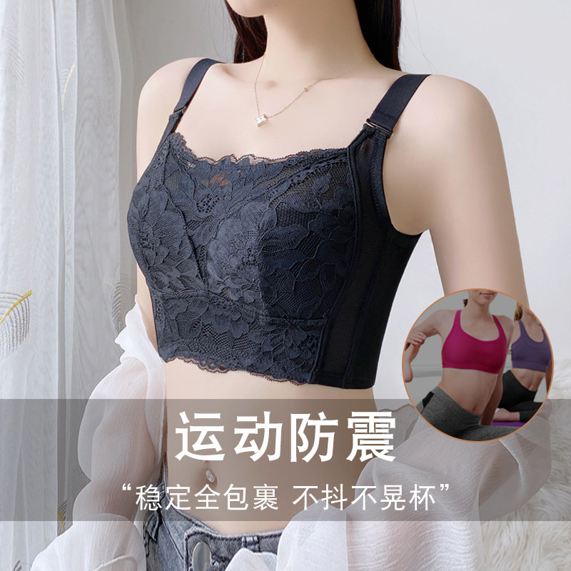黑色束胸内衣大胸显小防下垂收副乳无钢圈显瘦神器大杯抹胸式 文胸