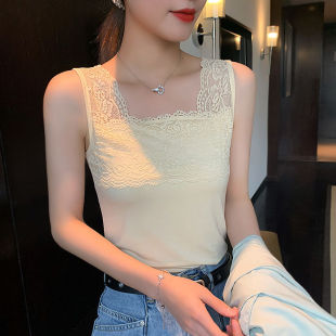 防走光大码 莫代尔薄款 纯色修身 无袖 显瘦 蕾丝吊带背心女内搭打底衫