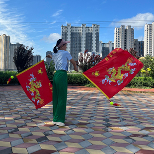 胜蓝龙凤旗花式 舞龙旗双旗健身龙旗流星球中老年人广场舞表演道具