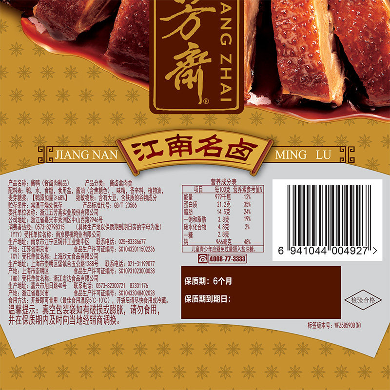 600g 包邮 苏州周庄特产酱鸭酱板鸭 鸭肉类零食小吃熟食美食卤烤鸭