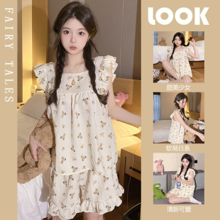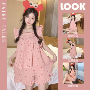 短袖 家居服套装 2022年新款 薄款 可爱甜美吊带短裤 公主风睡衣女夏季