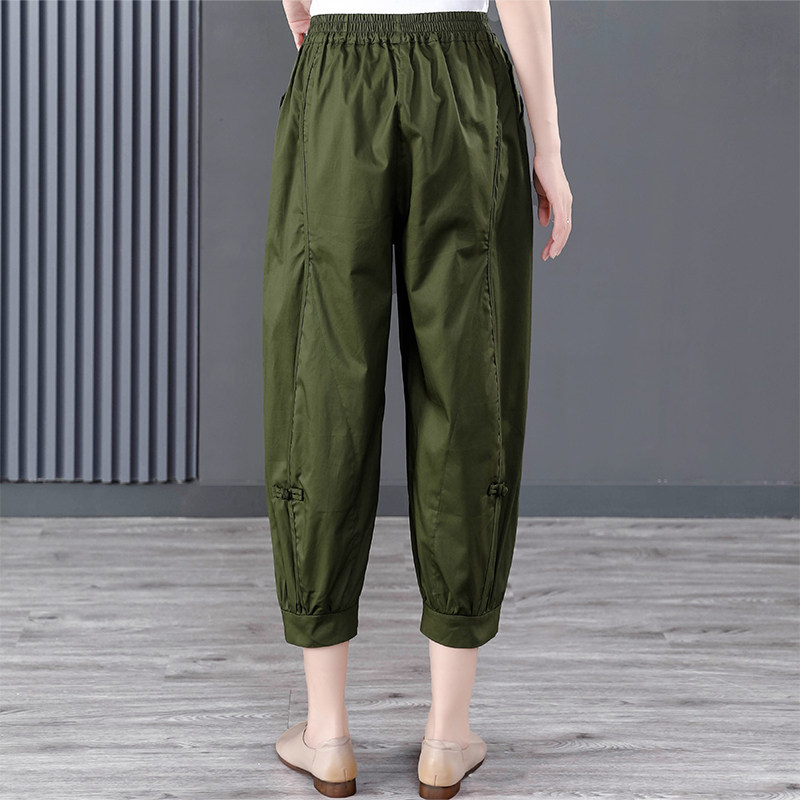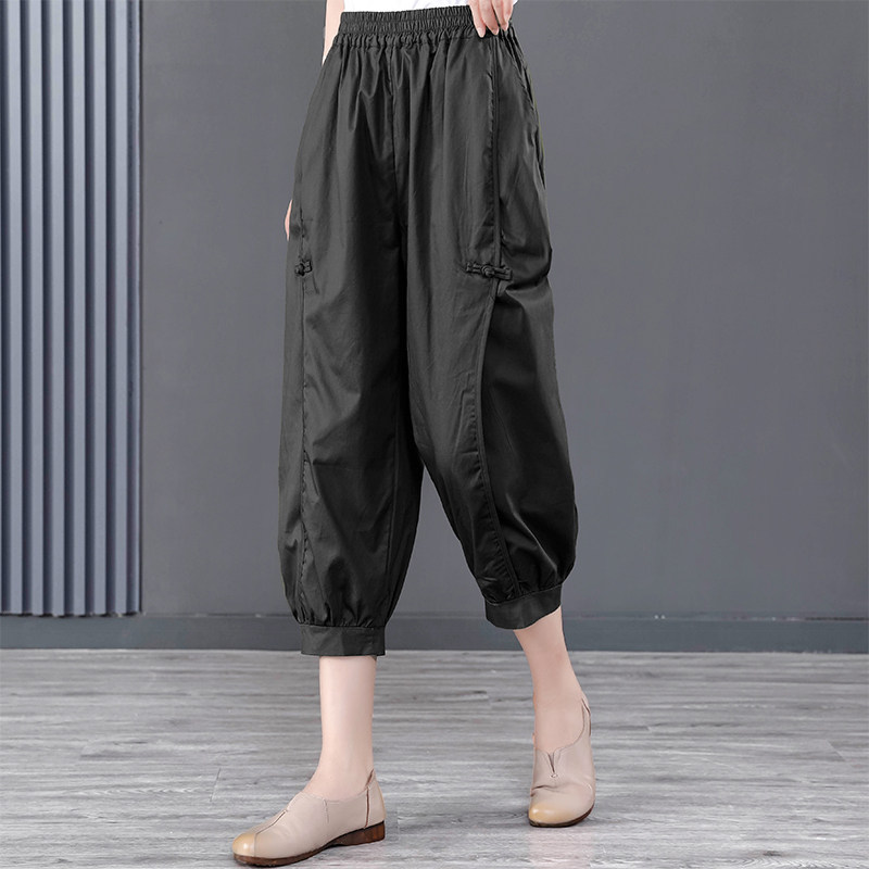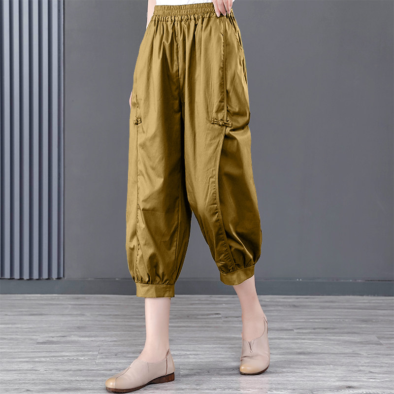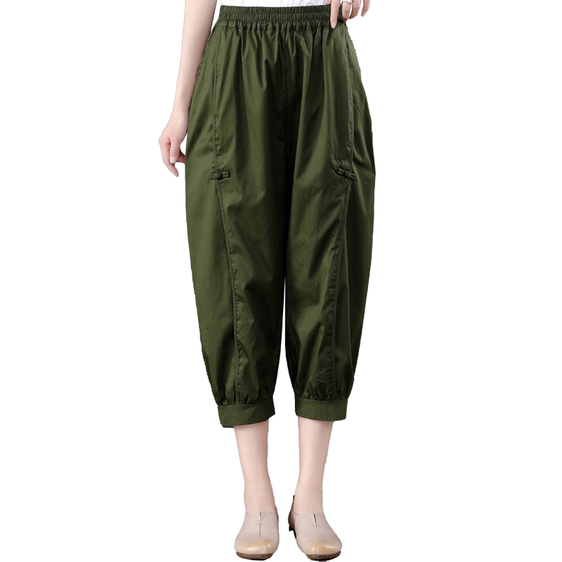 七分哈伦裤 女复古文艺盘扣拼接大码 百搭纯棉休闲裤 2026春夏装