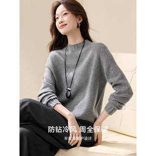 半高领100%绵羊毛针织衫 新款 女 2025秋季 沫晗依美无缝一体羊毛衫