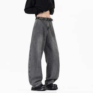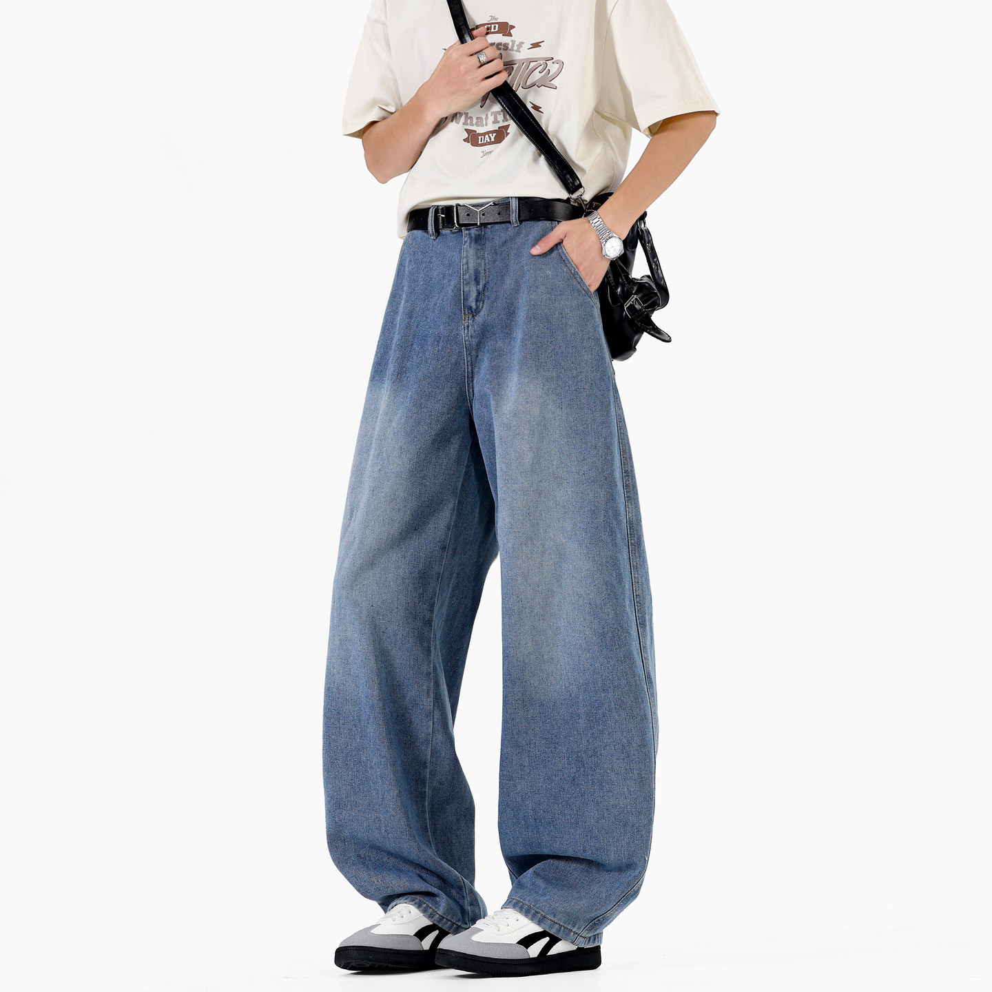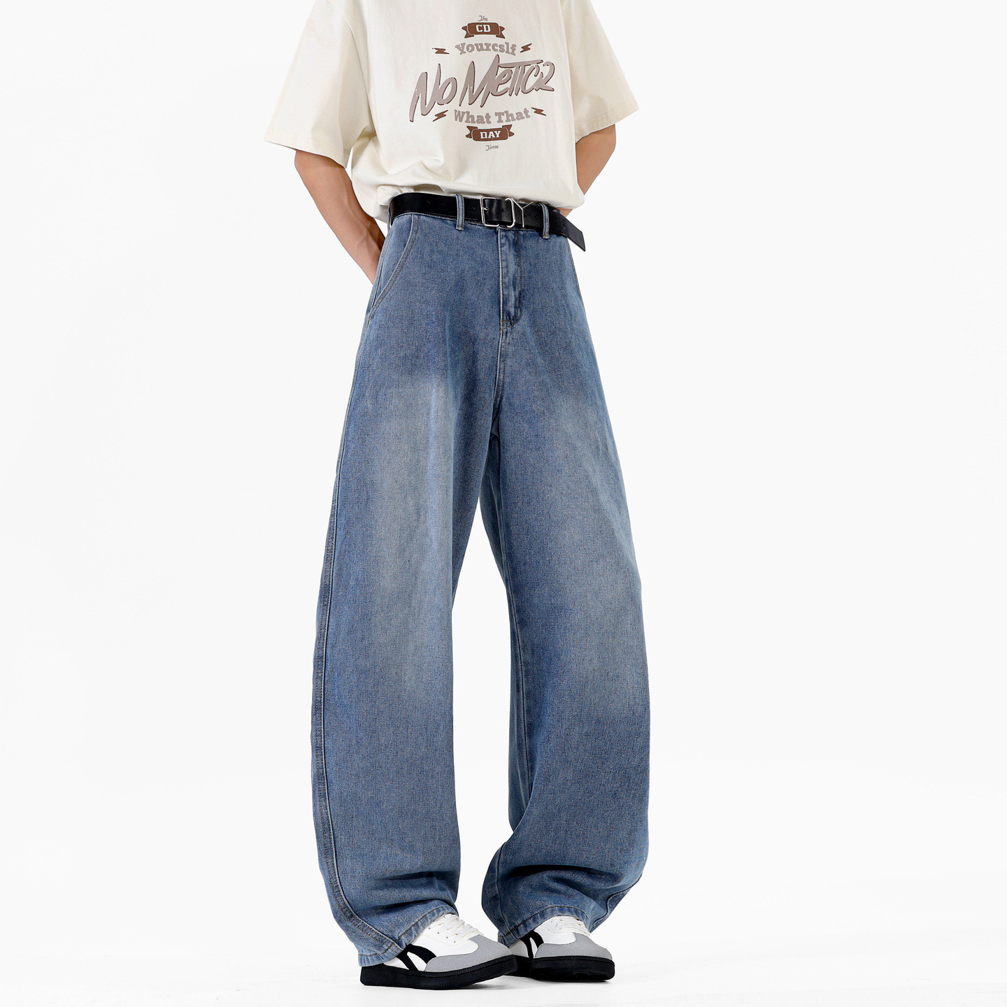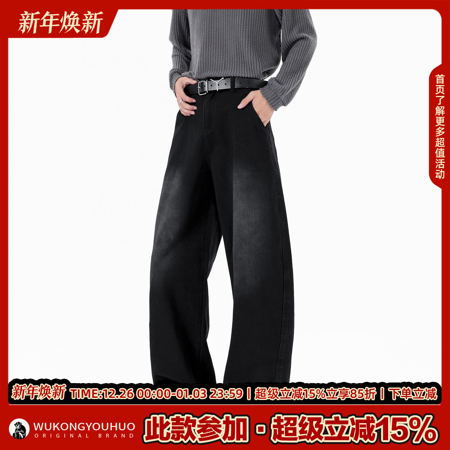 男女复古街头宽松百搭阔腿休闲裤 悟空有货潮牌美式 水洗弯刀牛仔裤