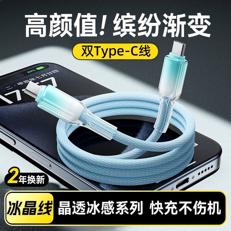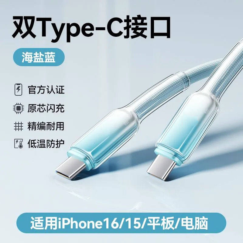匿名者适用iPhone15 16快充线超耐用冰晶数据线适用于苹果安卓手机通用双typec口超级快充数据线