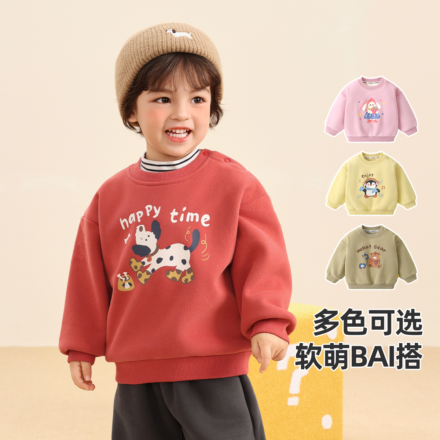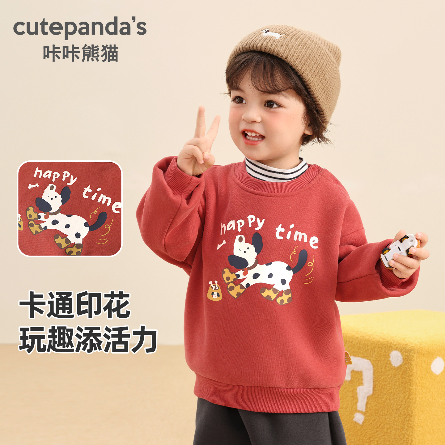 婴儿衣服男童童装 咔咔熊猫儿童卫衣加绒冬季 小宝宝厚上衣2025新款