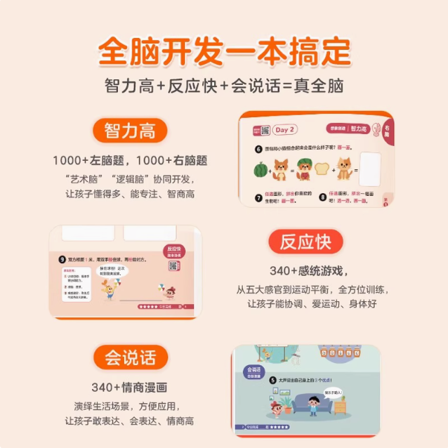 全脑开发思维逻辑训练书启蒙早教书幼儿园中大班 6岁幼儿儿童左右脑智力开发益智书 学而思摩比全脑开发3000问