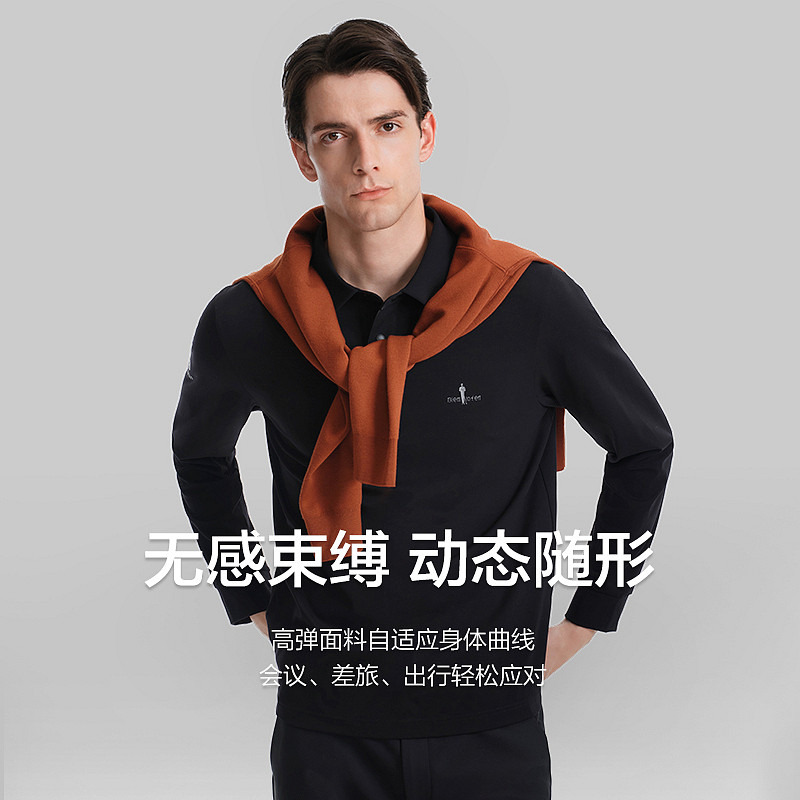 轻量厚实 轻商务高端翻领长袖 比音勒芬2025秋季 男士 POLO衫 新款