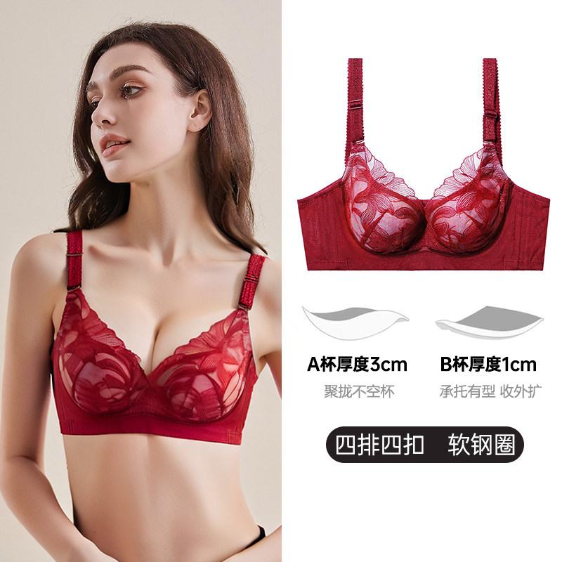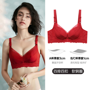 夏娃之秀硅胶蕾丝性感聚拢文胸小胸显大防下垂调整型透气红色内衣