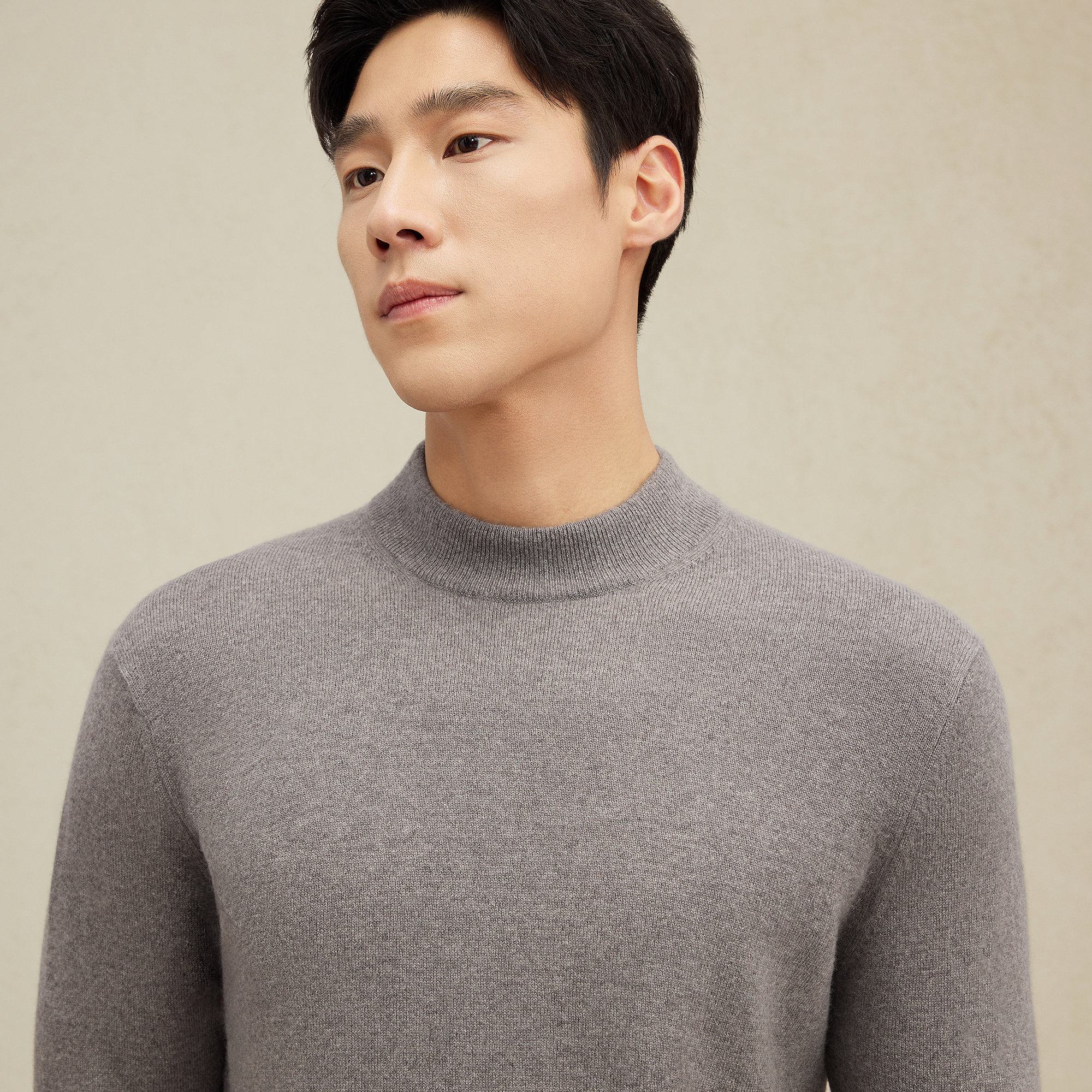 秋冬纯色百搭通勤保暖针织套衫 半高领羊绒衫 男装 鄂尔多斯1980