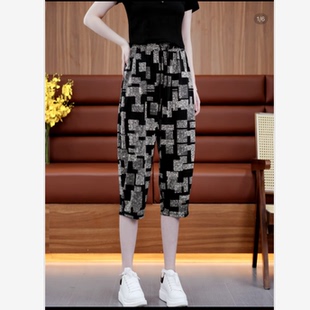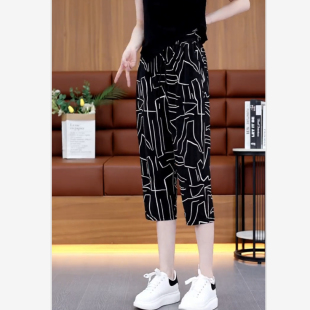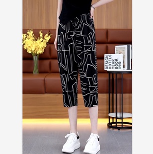凉凉直筒裤 七分裤 垂感宽松显瘦小脚休闲哈伦裤 新款 印花 女2026夏季