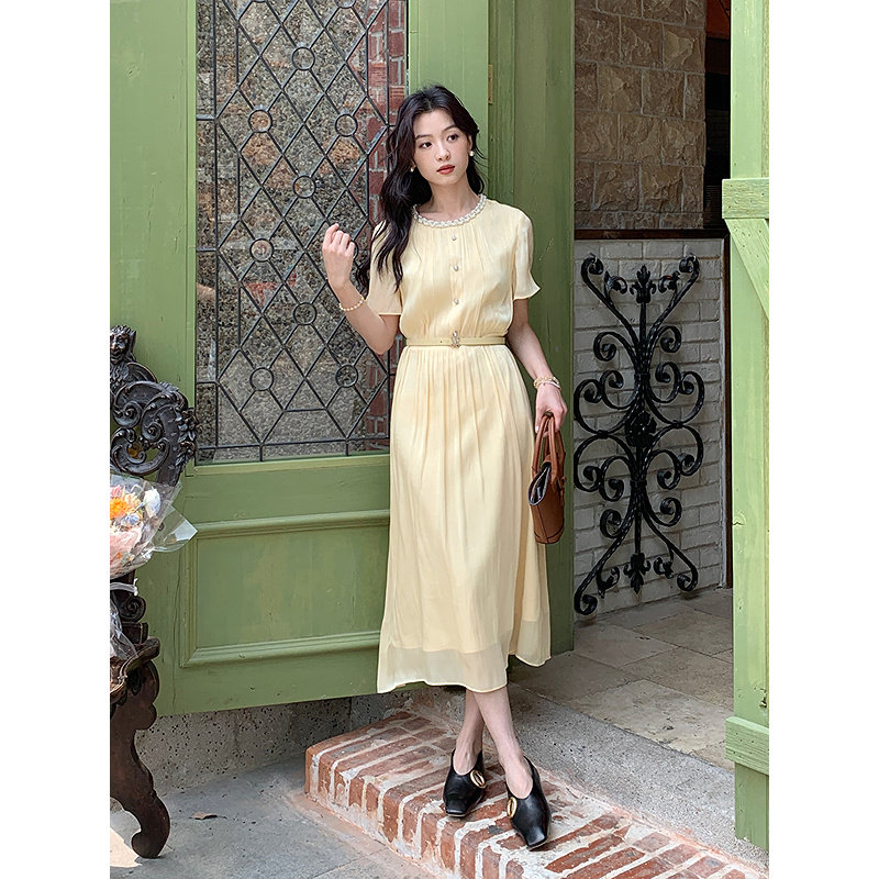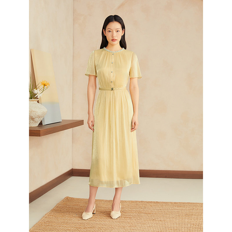 新款 YINER音儿专选2025夏季 人鱼姬鎏光纱钉珠连衣裙 周末花园