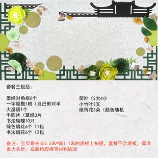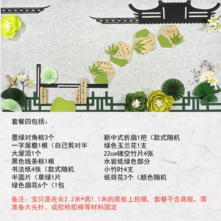 新中式 饰壁饰 国风小学黑板报水墨屋檐花朵主题墙毛毡材料墙贴装