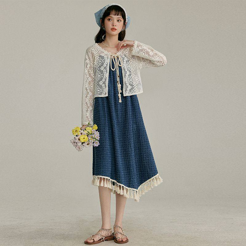SNIDEL秋冬款 吊带针织连衣裙两件套SWNO245228 针织披肩开衫