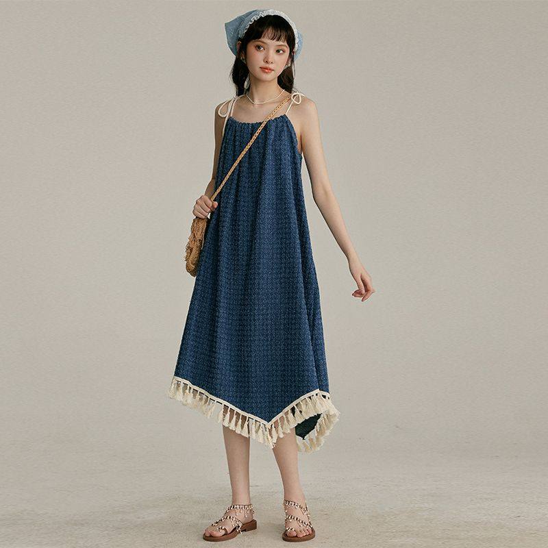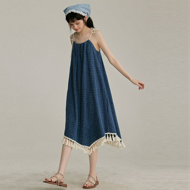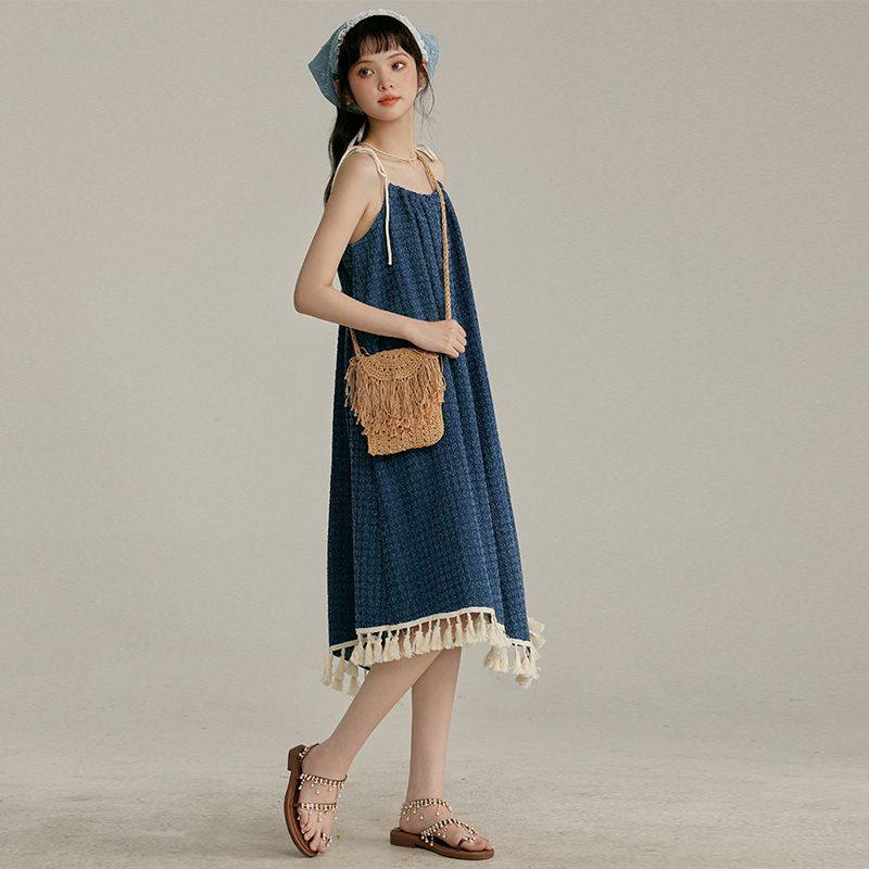 长裙 收腰显瘦气质无袖 pusumede法式 方领针织拼接背心连衣裙女夏季
