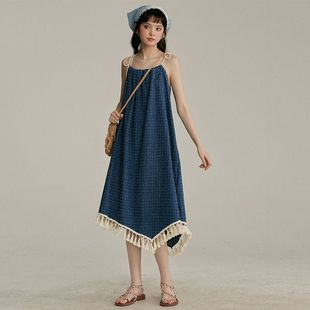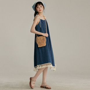 格纹收腰蕾丝挂脖连衣裙女 与恶魔有约 你 懒懒llan