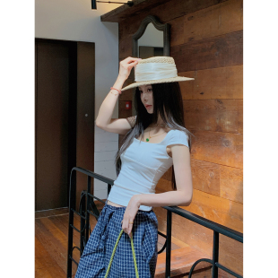 显瘦百搭设计感上衣短款 MINI 收腰修身 白色方领小飞袖 STUDIO徐琳