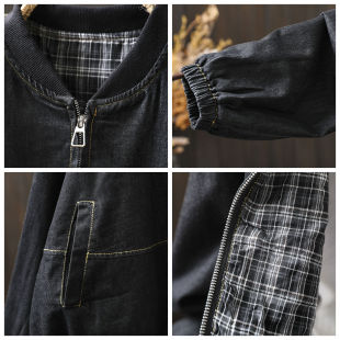 立领棒球服夹克潮 独特好看小个子黑色短款 牛仔外套女2026新款 春装