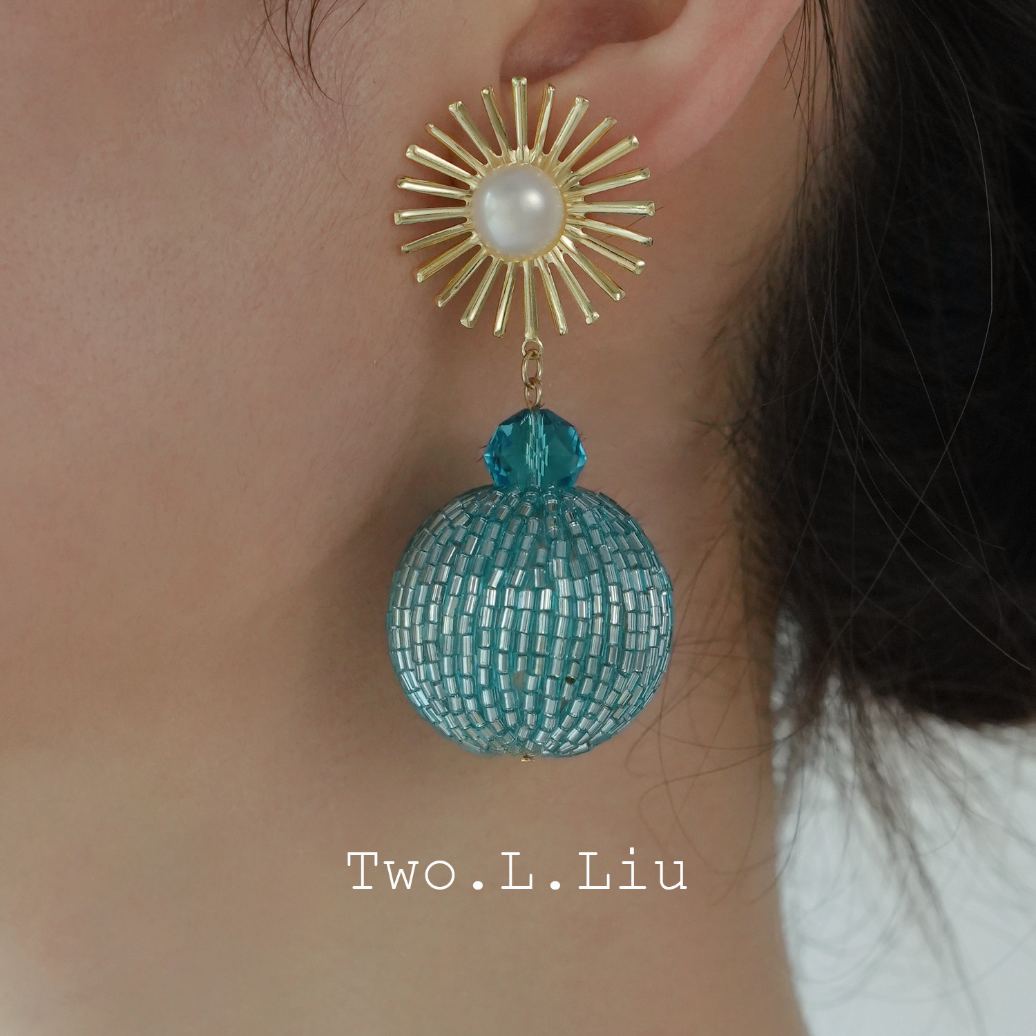 Two.L.Liu蓝色气质耳环女高级感原创设计气质耳坠轻奢夸张耳夹