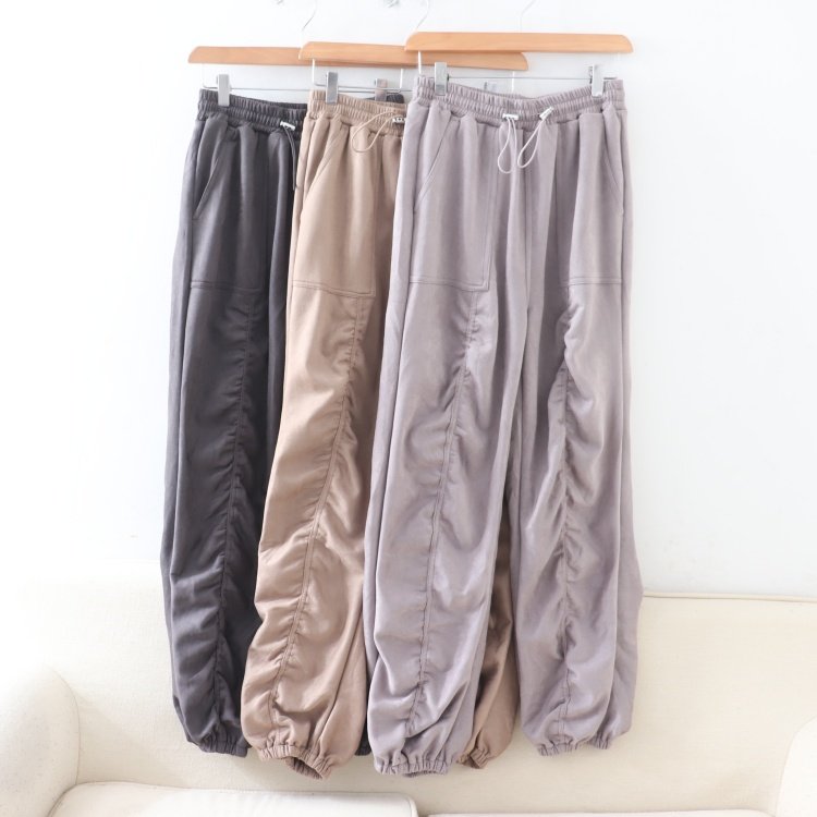 褶皱休闲裤 B060120日单秋新款 客供料抽绳松紧高腰宽松显瘦女工装