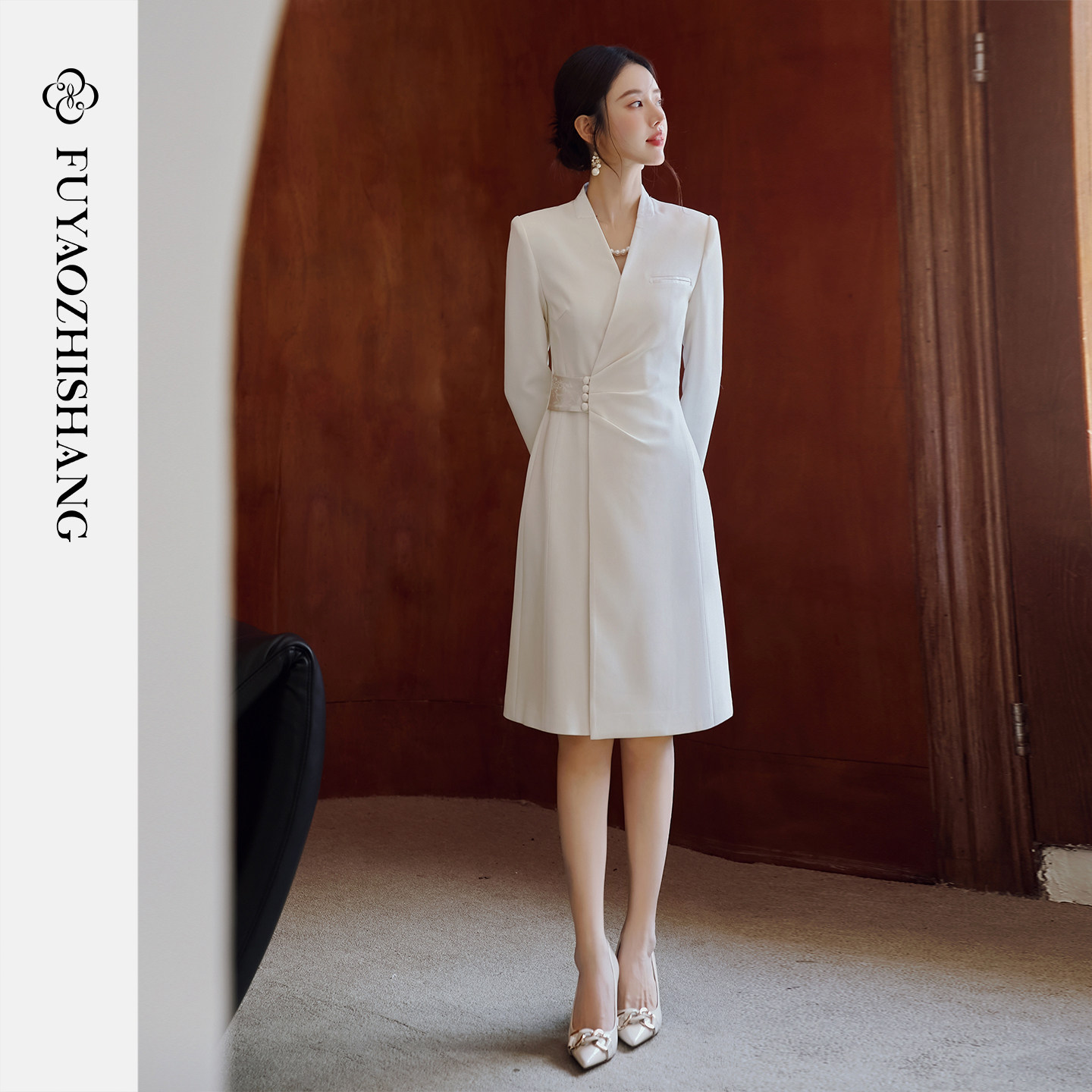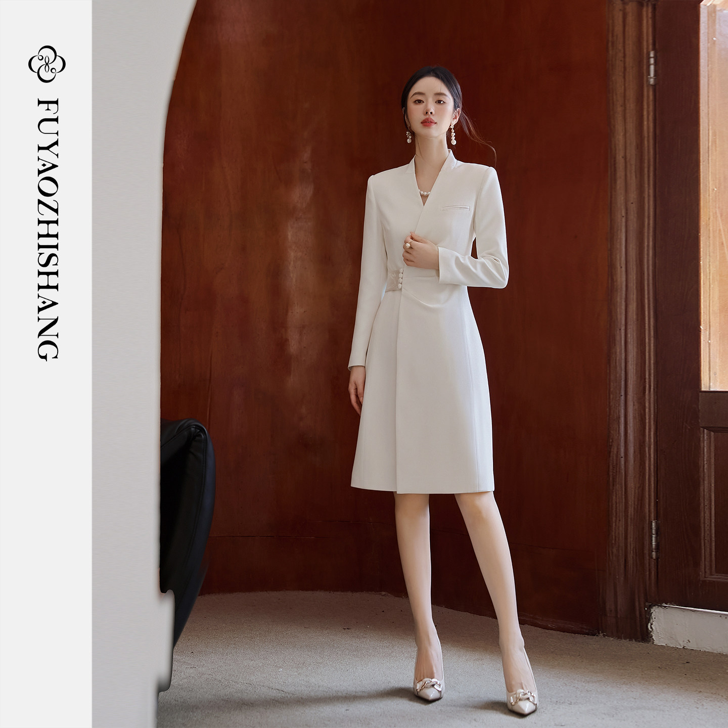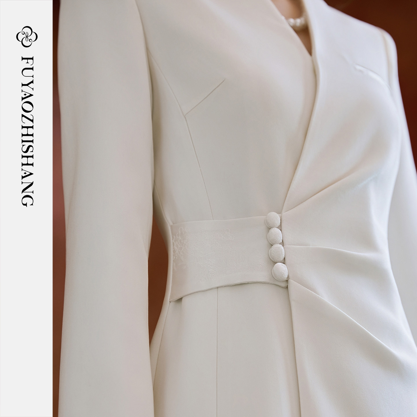 FUYAO扶摇 国风女神范中长裙醋酸缎面裙子 中华风连衣裙女2025新款