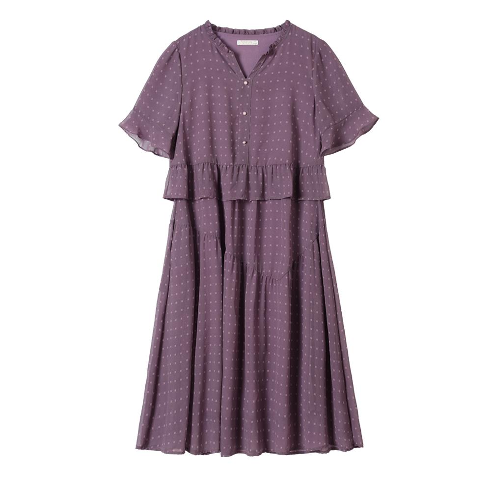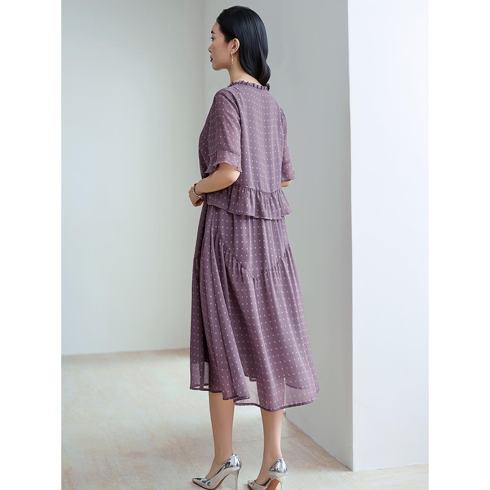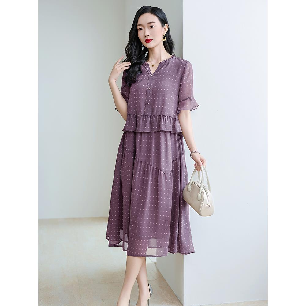 连衣裙女大码 荷叶边拼接长裙出游高级紫色短袖 裙子 新款 2025年夏季