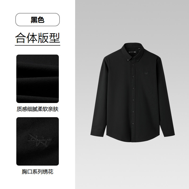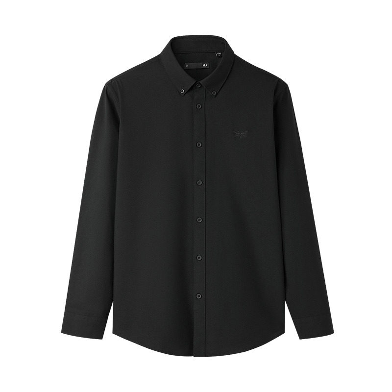 2025春秋新款 衬衫 纯棉牛津纺速干上衣男 海澜之家黑色纯棉长袖 HLA