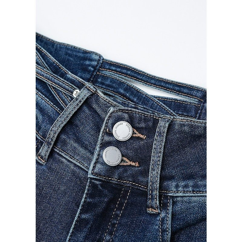 百搭铅笔裤 新款 2025秋季 EF复古气质高腰弹力双排扣牛仔小脚裤
