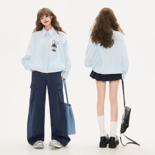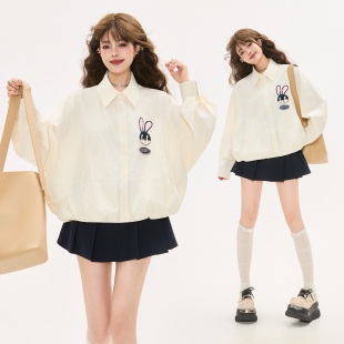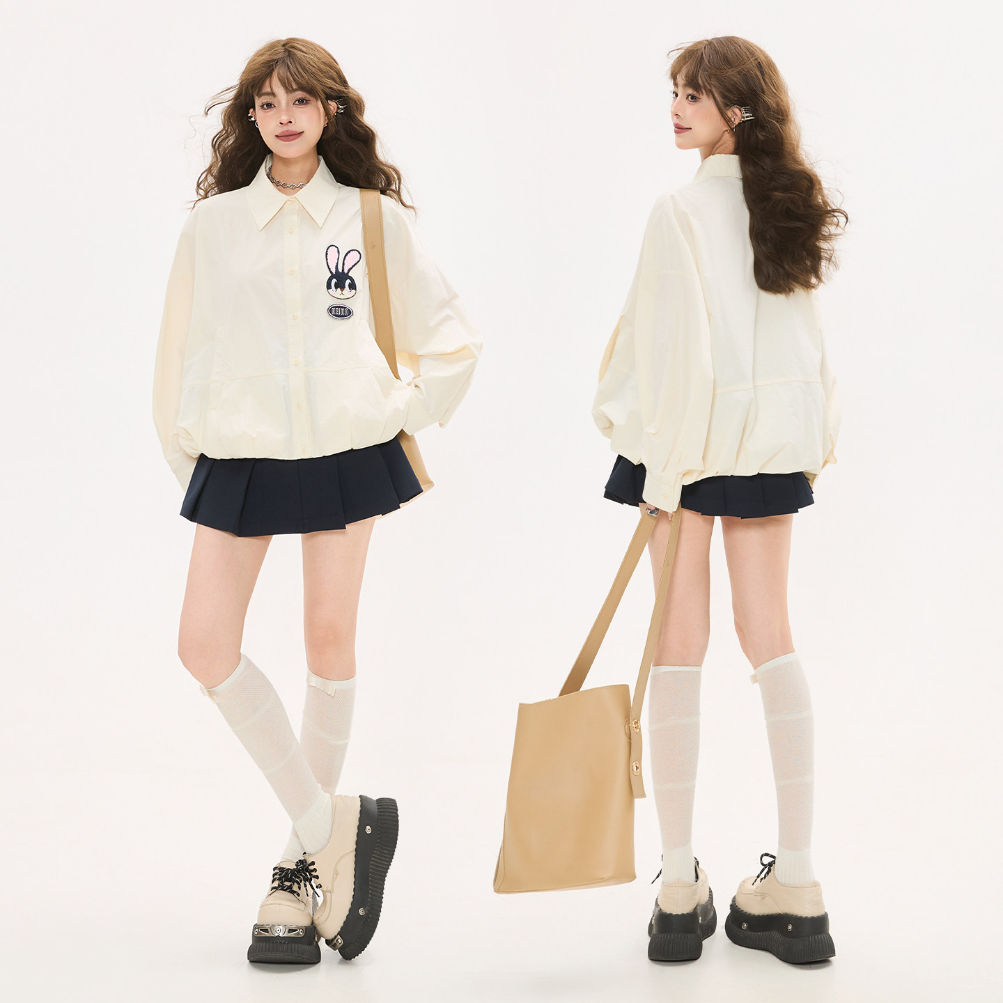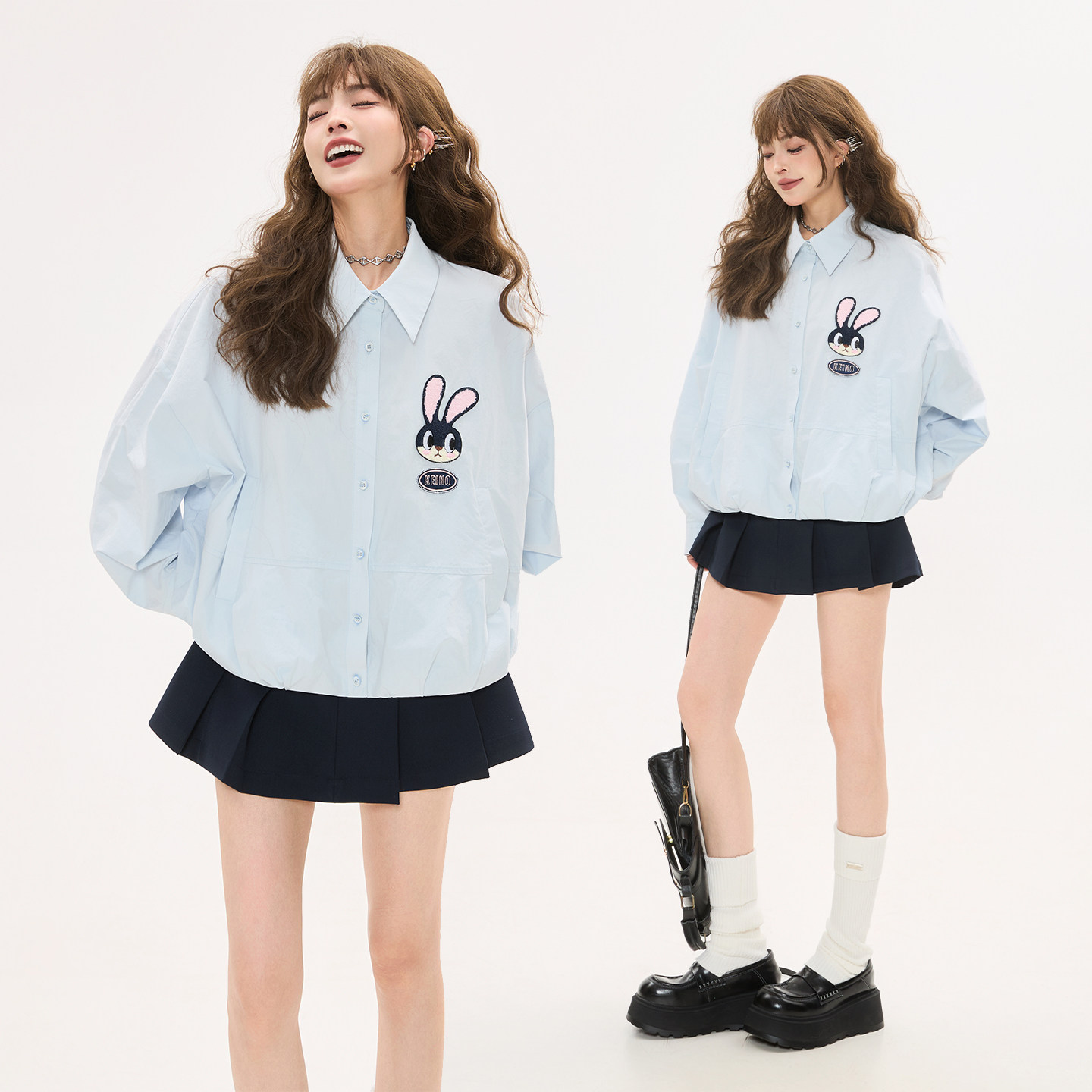 萌兔绣花廓形长袖 上衣薄款 衬衫 可爱减龄泡泡袖 外套 女26春季 KEIKO