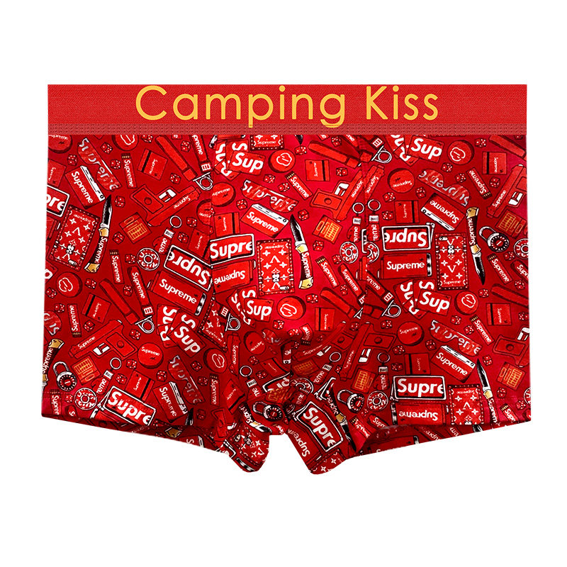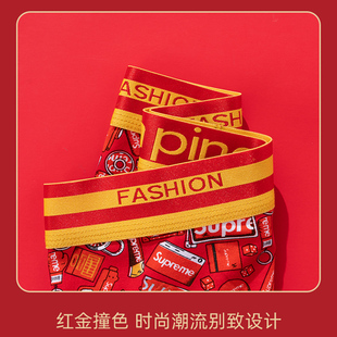 男士 马年平角短裤 红色四角裤 新款 男生 头大码 七匹狼纯棉本命年内裤