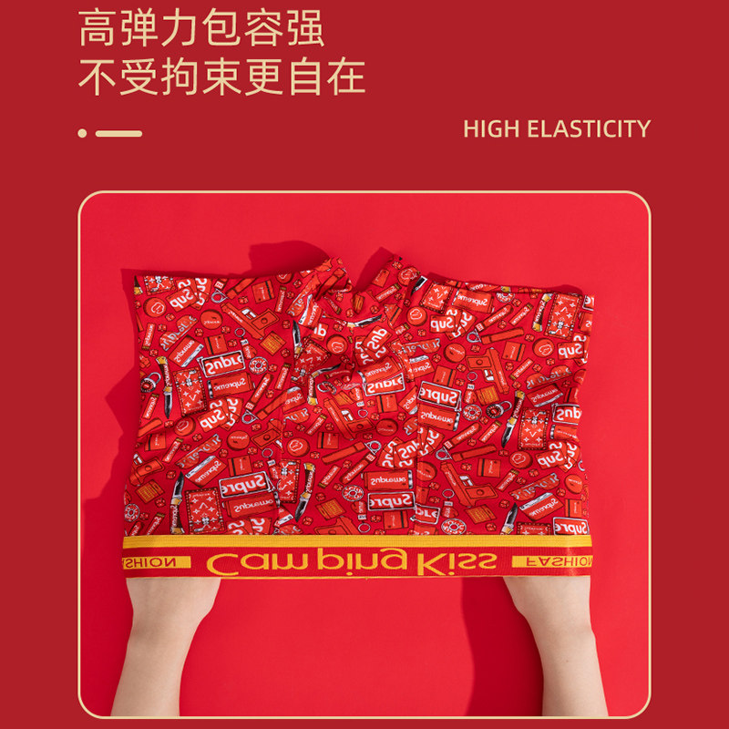 四角短裤 雅鹿本命年内裤 纯棉大红色礼物属马年结婚大码 平角裤 男士