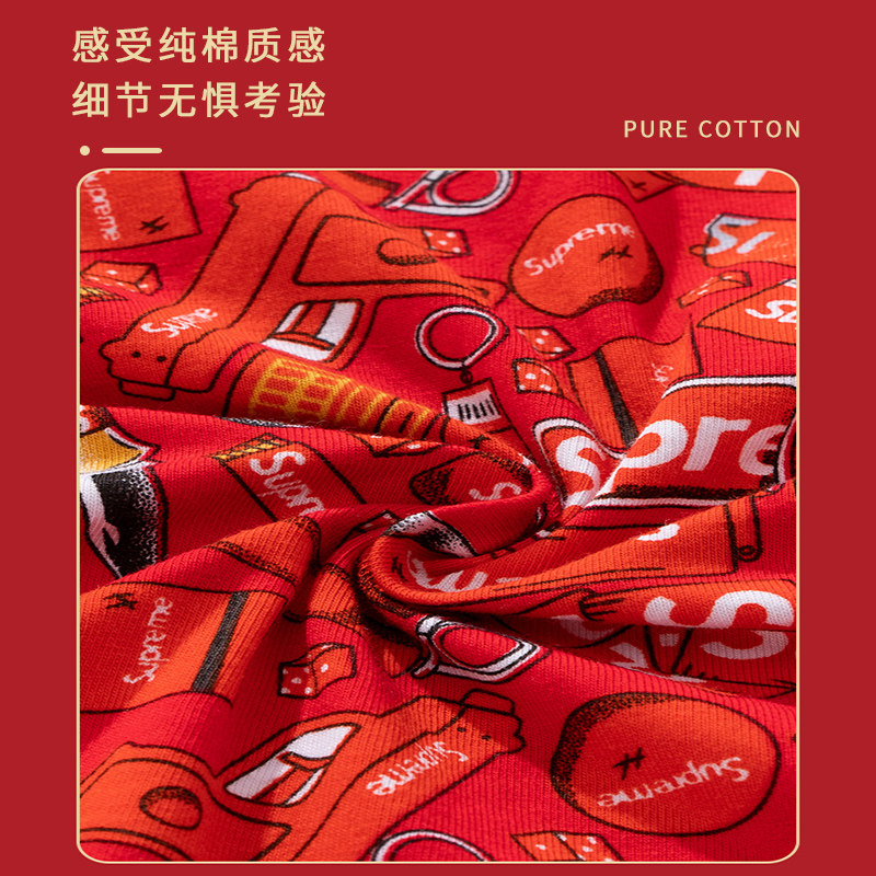 礼盒 纯棉抗菌裆本命年蛇马结婚礼物袜子平角短裤 红豆男士 红色内裤