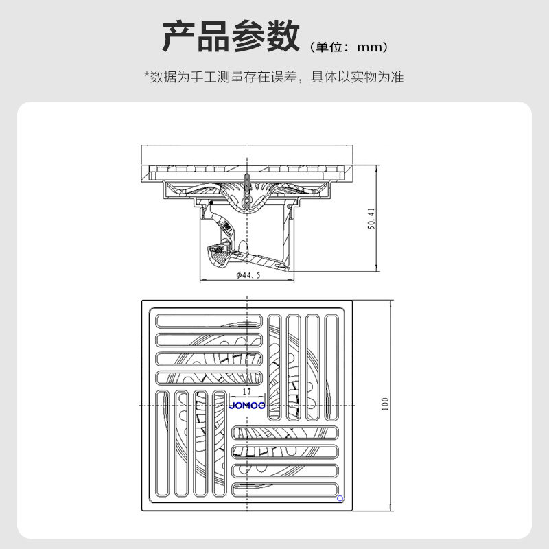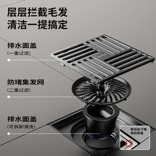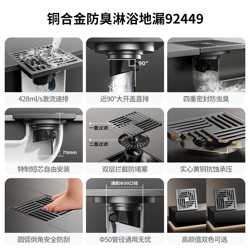 九牧官方旗舰店枪灰黄铜地漏防臭大流量淋浴地漏卫生间家用下水道
