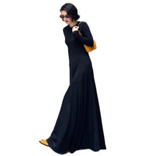 莫代尔棉修身 连衣裙圆领长袖 大摆人气长裙 抖音长款 2024年春夏新款