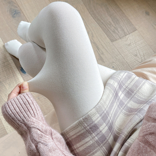 日系jk奶白色连裤 袜秋冬加厚加绒白色打底袜女棉质显瘦米白色丝袜