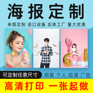 海报定制宿舍墙贴明星照片自印写真图片打印制作广告贴纸宣传挂画
