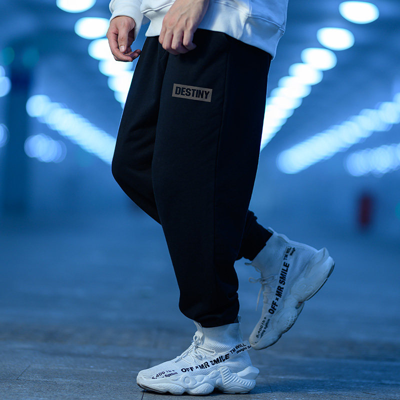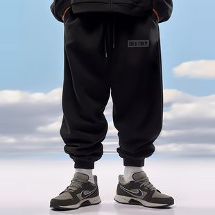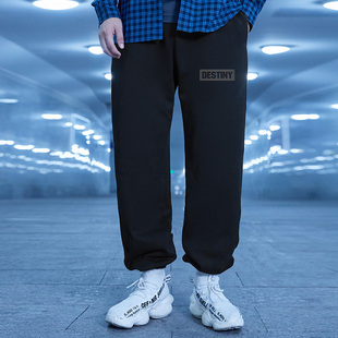 潮牌宽松运动长裤 男士 加绒男生休闲加肥加大码 纯棉束脚卫裤 秋冬款