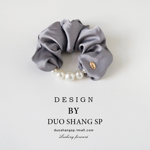法式 珍珠大肠发圈头绳女名媛风皮筋高级感头花气质绑马尾缎面发绳