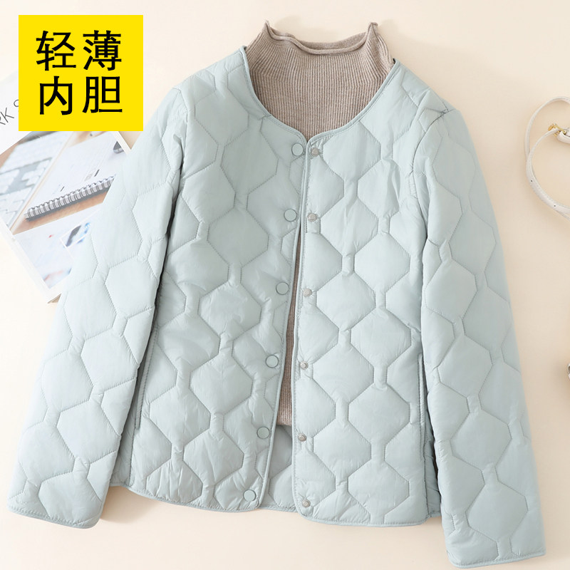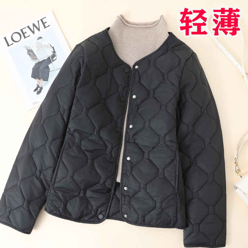 卡依佳秋冬轻薄羽绒棉服女短款 V领内胆棉袄 圆领百搭打底保暖长袖