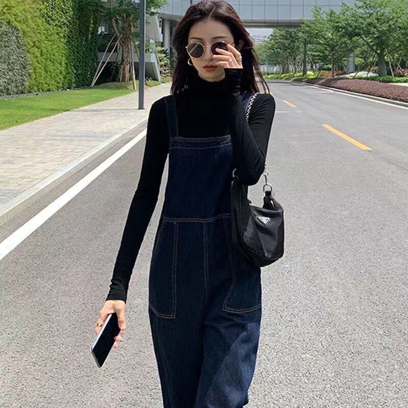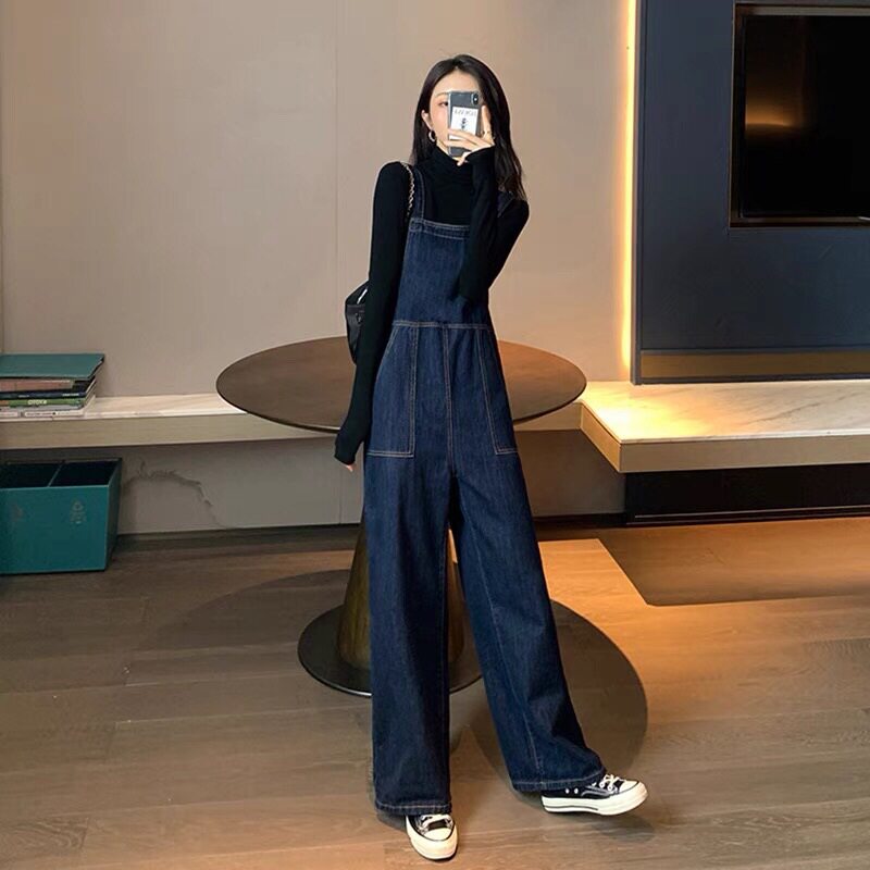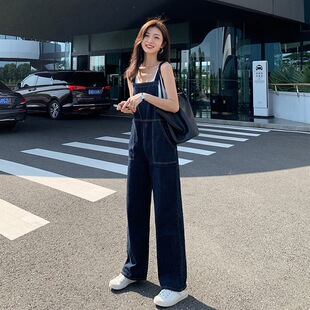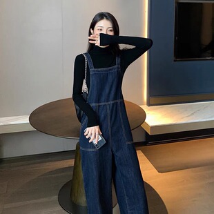 裤 春秋连体裤 子背带牛仔裤 新款 小个子遮 女宽松直筒时尚 金智妮同款